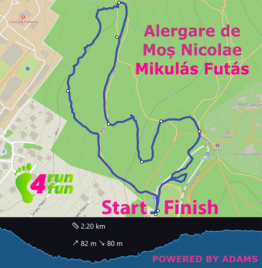 Distanța lungă/ Hosszútáv: 4 ture /kör – 8,8 km ( 1 tura /kör – 2,2 km – 80/ tura-kör)