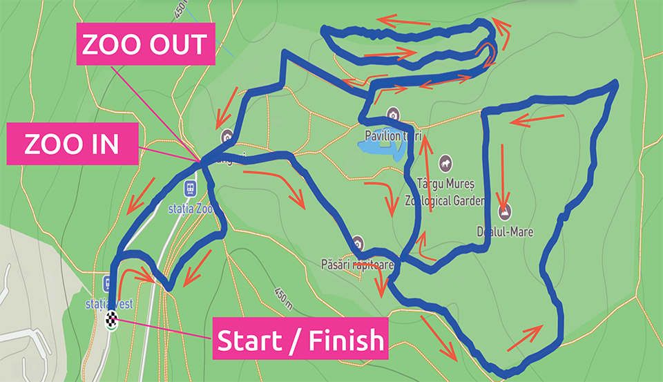 Tura Lungă/ Hosszútáv: 8,8 km – 2 ture ZOO / 2 kör az Állatkertben